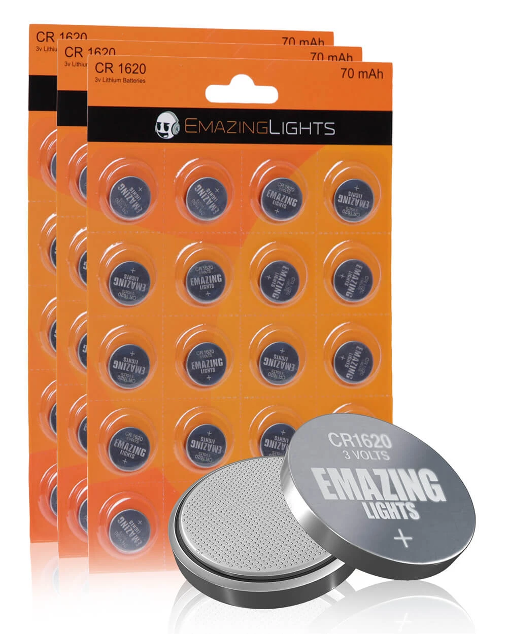 The battery to end all batteries. Other lesser batteries quake in fear when presented with our batteries’ almighty voltage, perfectly chiseled circular bodies, and the blinding shine of their premium etchings. The EmazingLights CR1620 Battery pack supplies reliable power to your lights and a wide variety of household electronics.