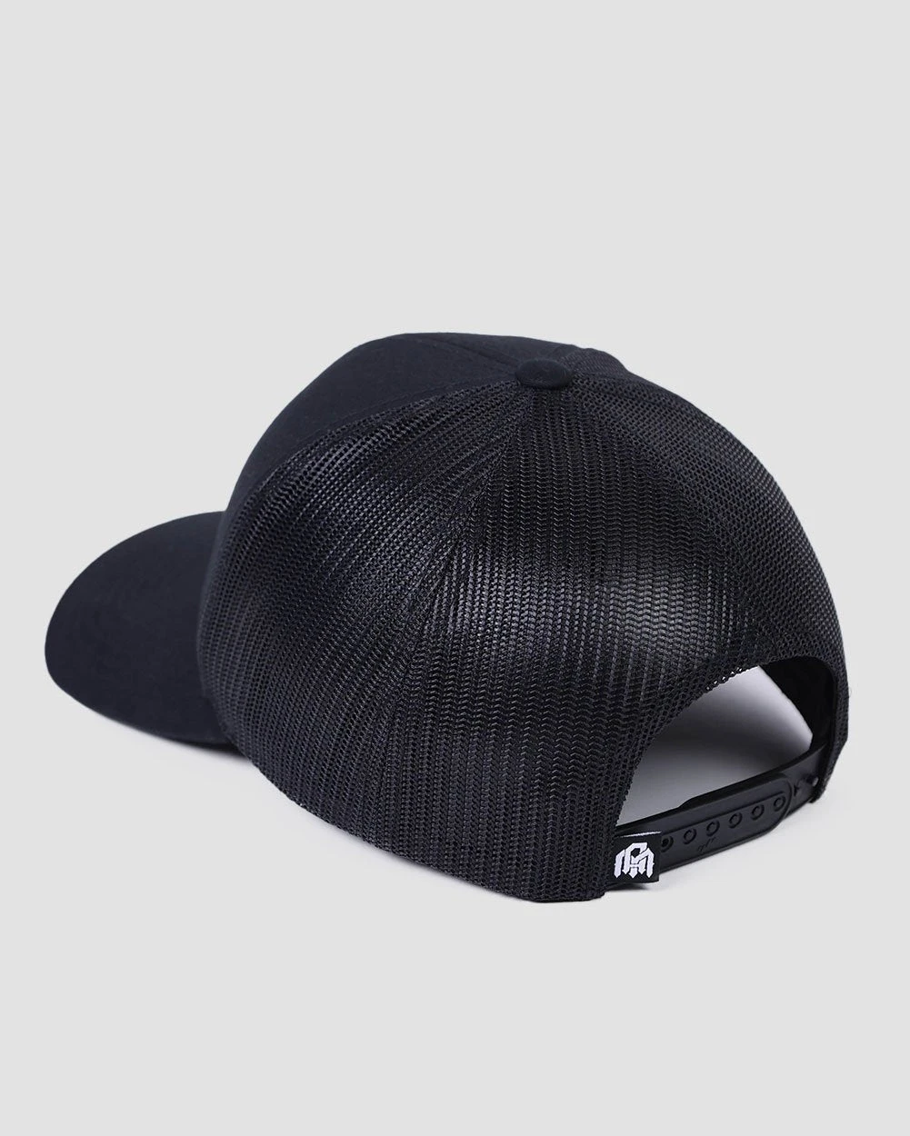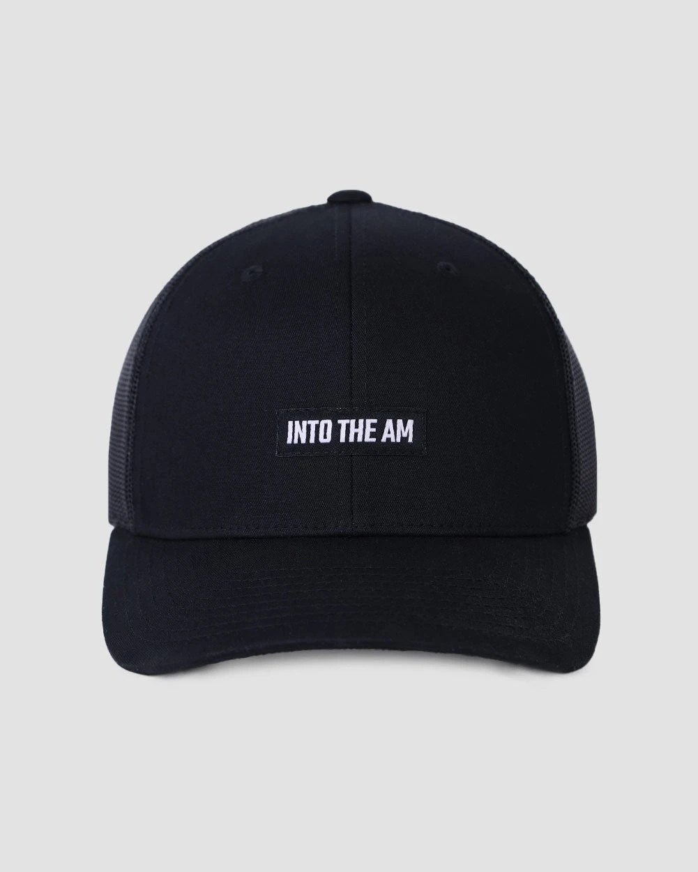 This premium polycotton Trucker features a woven INTO THE AM label, curved visor, and an adjustable, one size fits most, closure. The back four panels are constructed with a premium mesh for ultimate comfort and breathability.