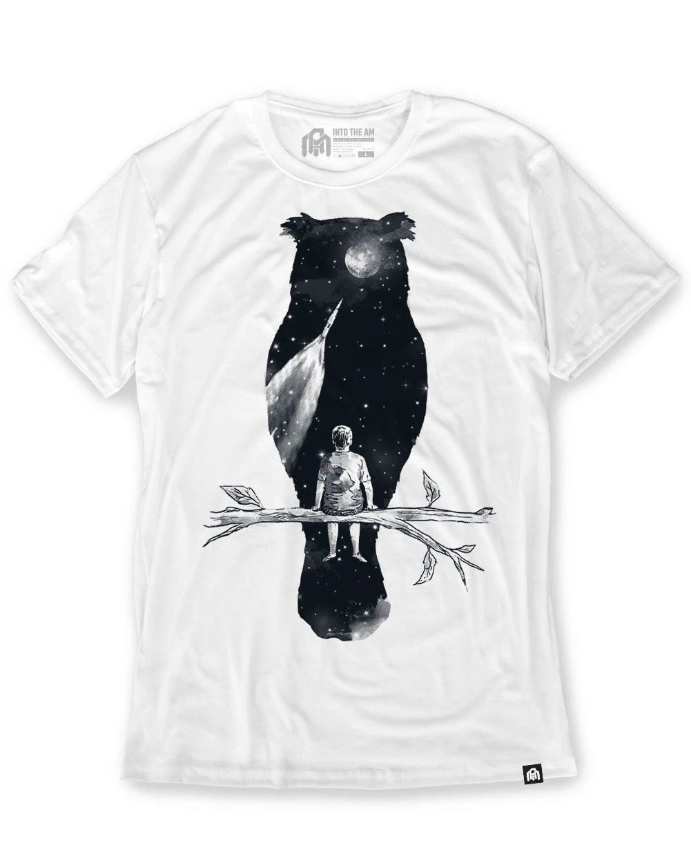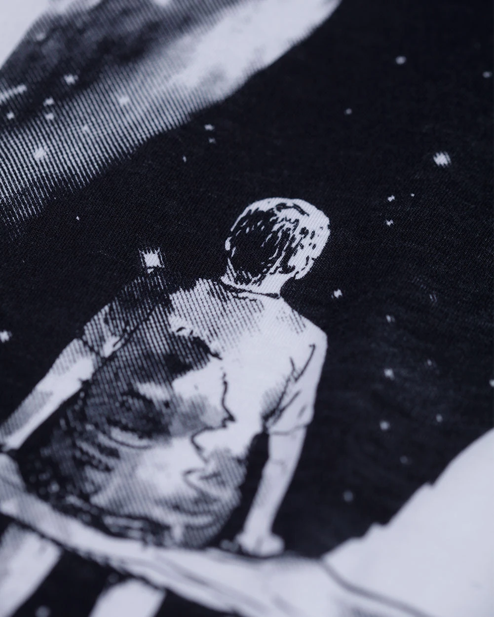 Our original design Dreamer Tee is a surreal escape to a wistful place of child-like wonder. A place where dreams begin among the stars and anything is possible.