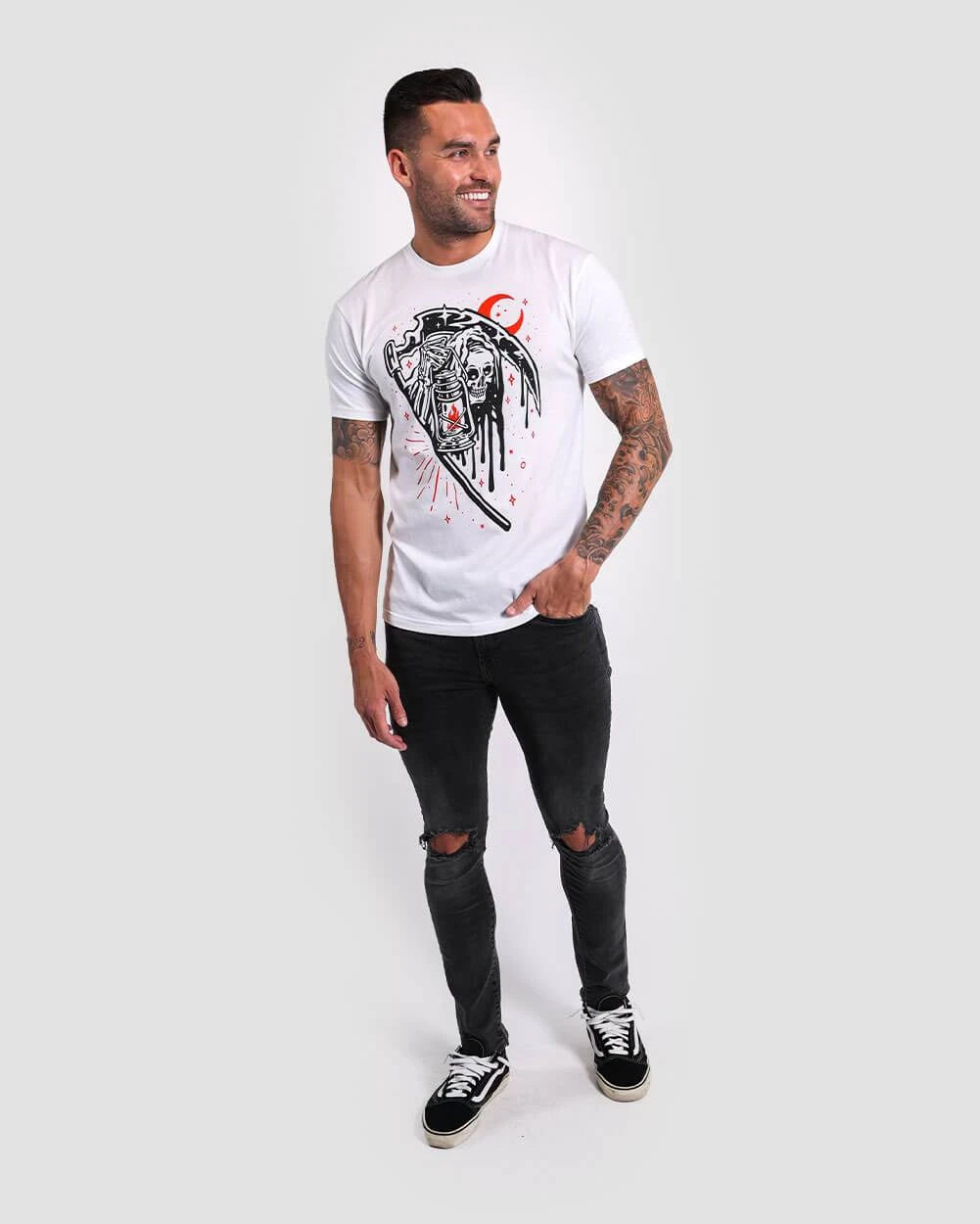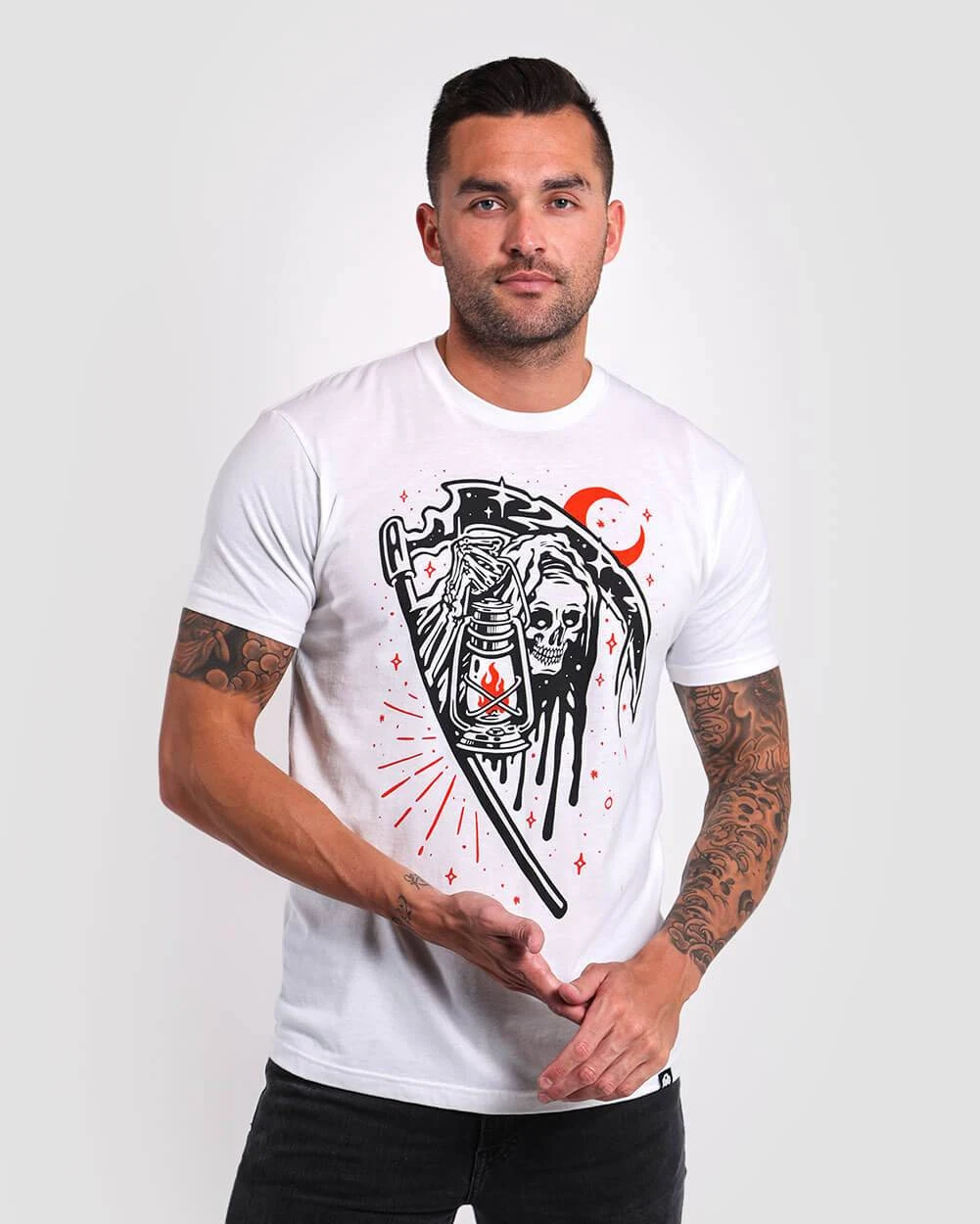 This Grim Greeting Tee is tailored from ultra-soft fabric and printed with the highest quality inks.