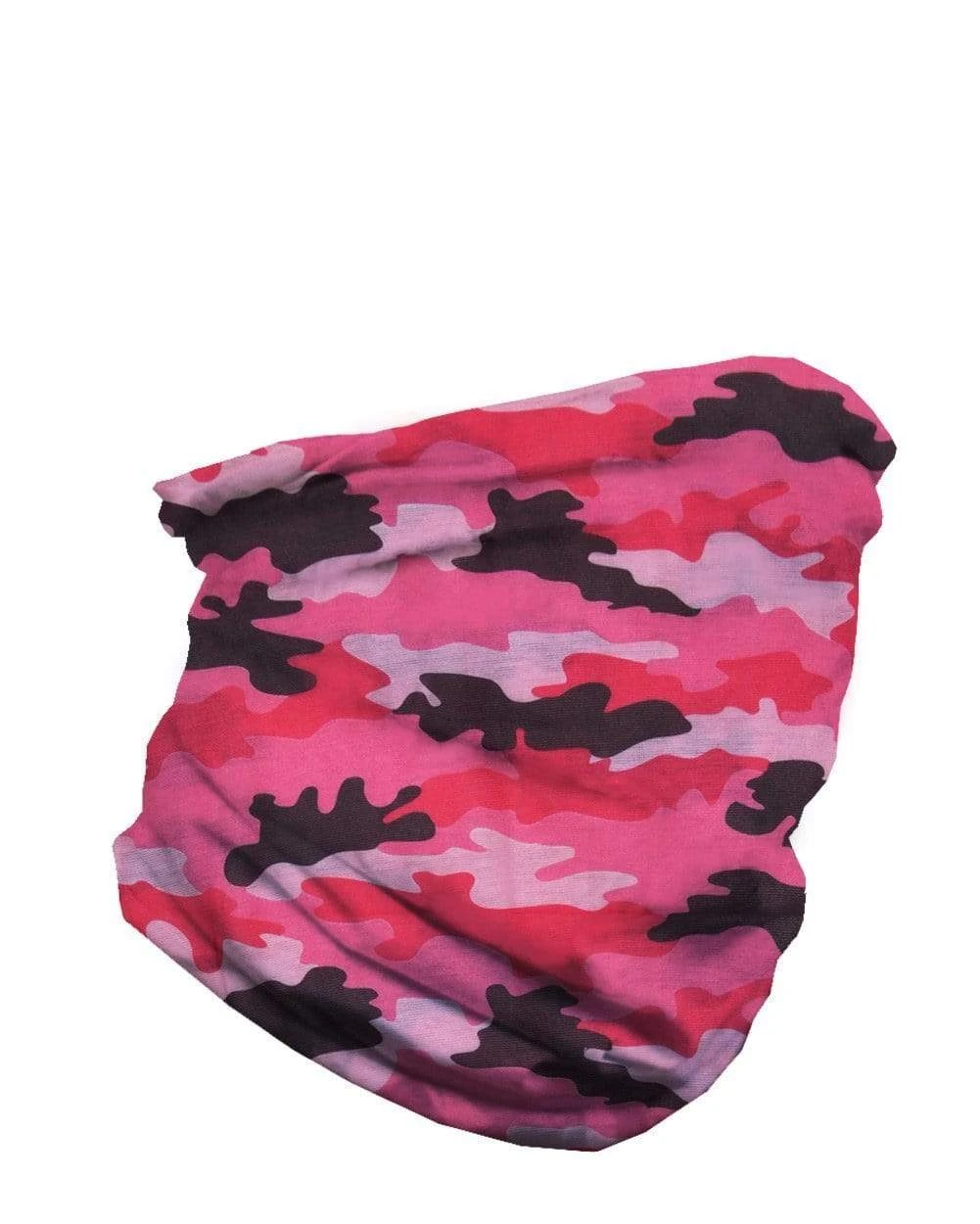 The Pink Camo Seamless Mask Bandana is a multi-functional face-covering that slides easily over your head to cover your neck, mouth, and nose. It can also be worn as a headband, wristband, hair tie, and more!