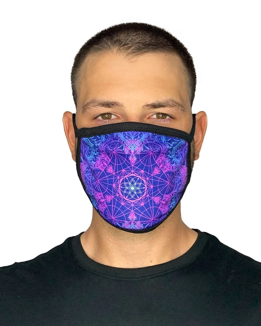 This Flower of Life Face Mask serves as an easy-to-wear daily protective face shield, designed for maximum comfort and style.